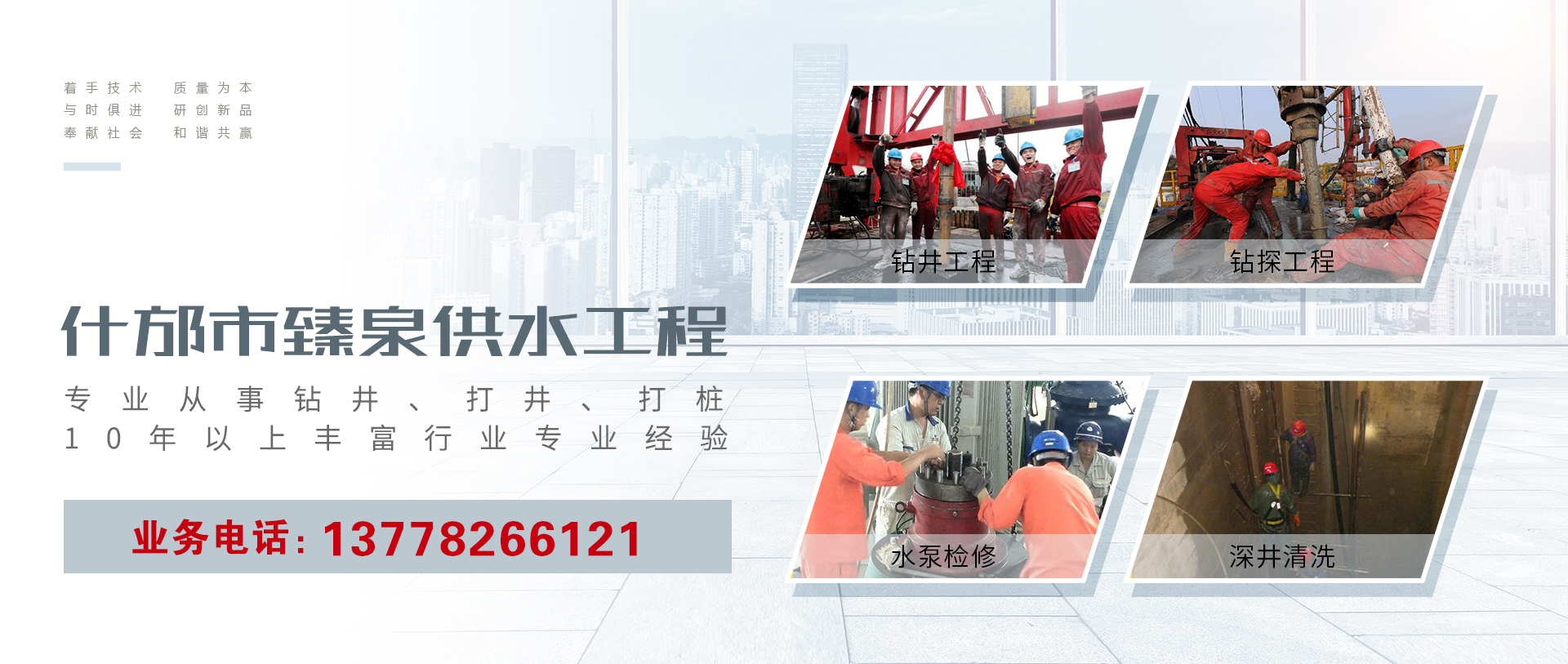 什邡市臻泉供水工程有限公司,座落于四川省德陽(yáng)市什邡市南泉鎮(zhèn)南陽(yáng)村15組,公司成立于2017年,目前是四川德陽(yáng)地區(qū)專(zhuān)業(yè)從事工地降水井施工、降水井排水管道安裝布設(shè)、農(nóng)業(yè)灌溉井施工、工業(yè)深水井施工、人畜飲水工程深水井施工、野外地下水勘探、工地基礎(chǔ)護(hù)壁樁、橋梁承重樁施工的專(zhuān)業(yè)打井、降水、打樁、水塔安裝的施工隊(duì)伍。 公司在成立的前身是一支10多年時(shí)間常年在四川甘孜州、阿壩州、德陽(yáng)市、成都市、綿陽(yáng)市、南充市、遂寧市、青海省玉樹(shù)自治州、西藏自治區(qū)日喀則市、阿里地區(qū)、...